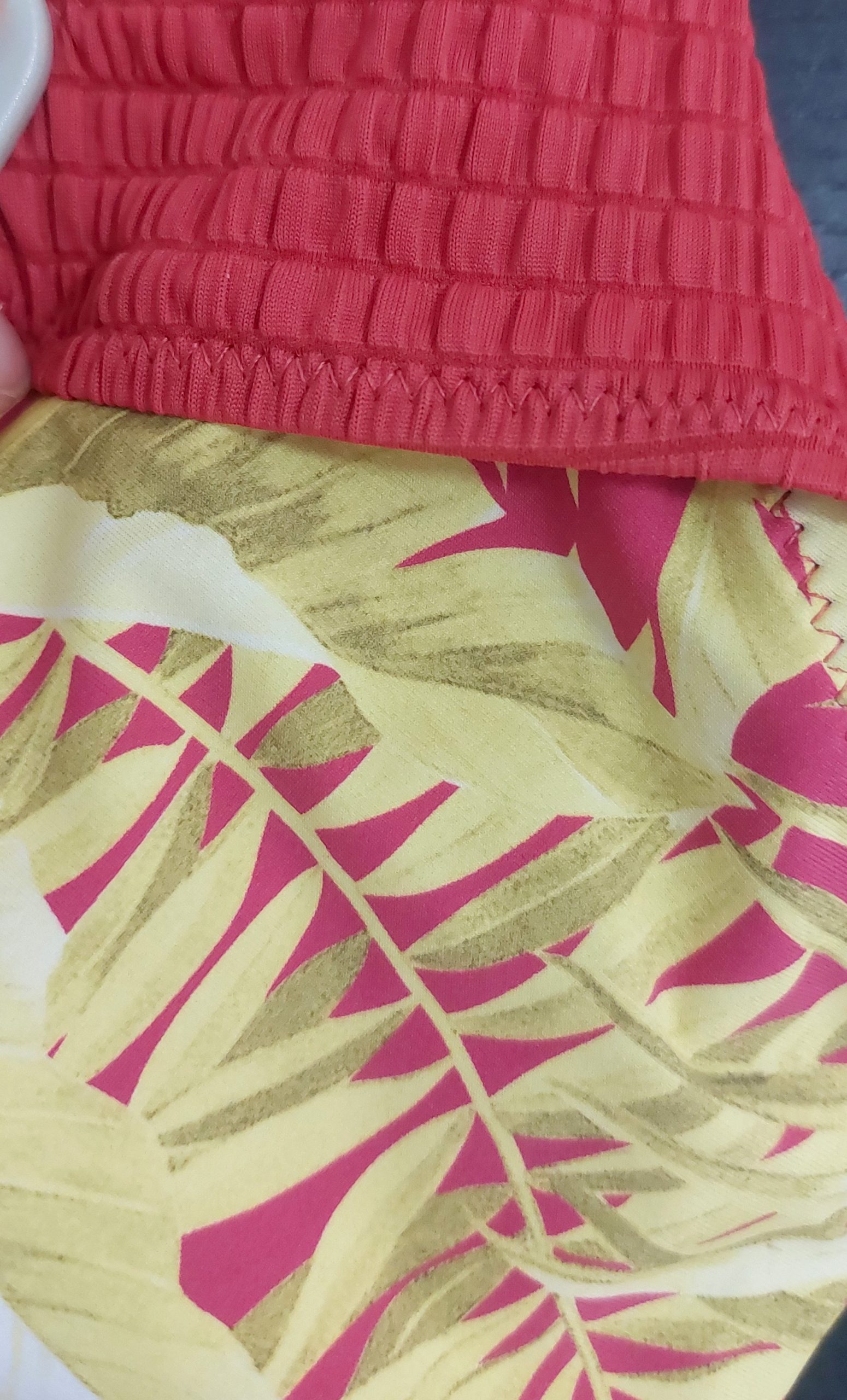 - gaćice glatkog materijala u cvetnom dezenu a top rebrastog jednobojnog materijala